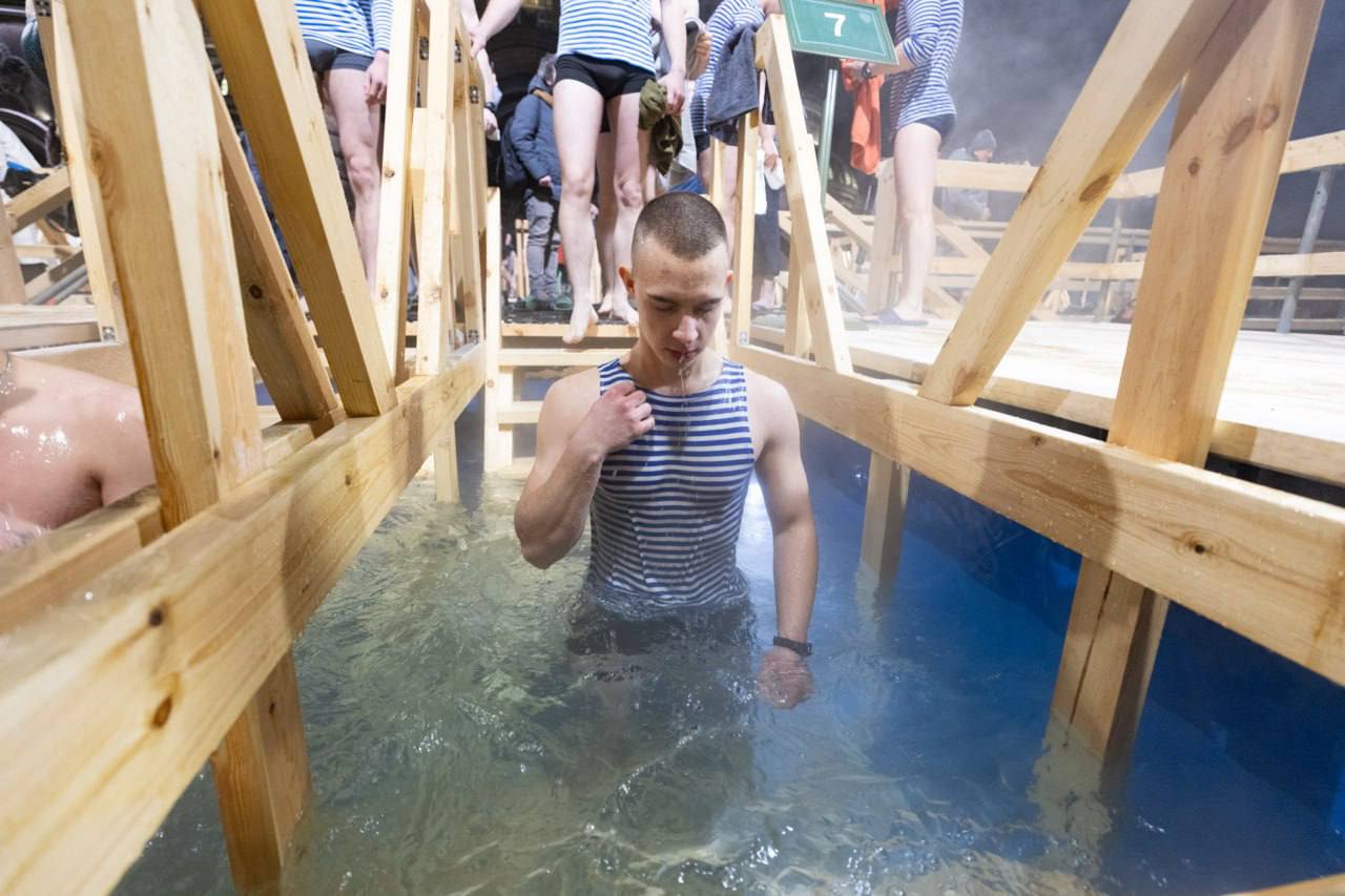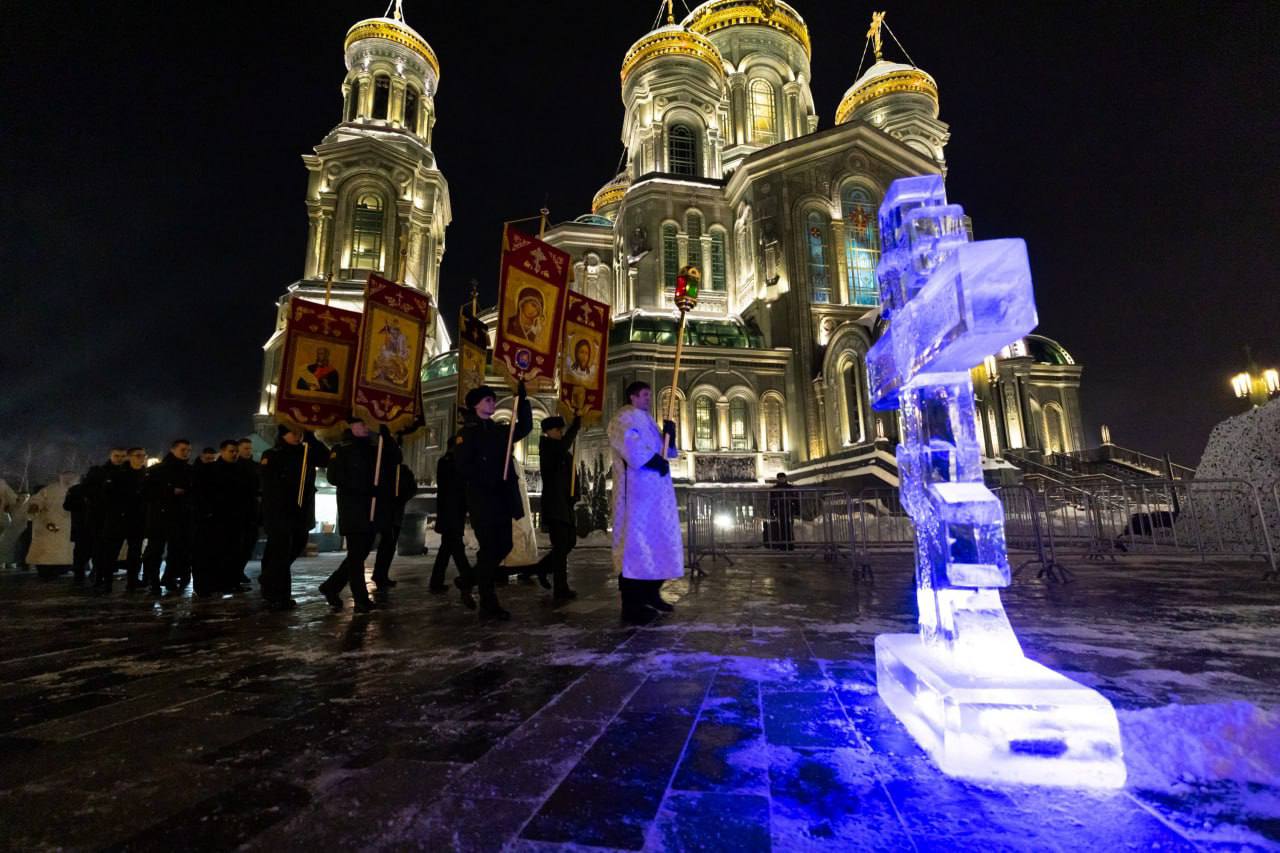 В главном храме вооруженных сил России в крещенскую ночь более двух тысяч верующих приняли участие в богослужении, поклонились главной святыне — иконе «Спас Нерукотворный», совместно молились и совершили традиционное погружение в иордань