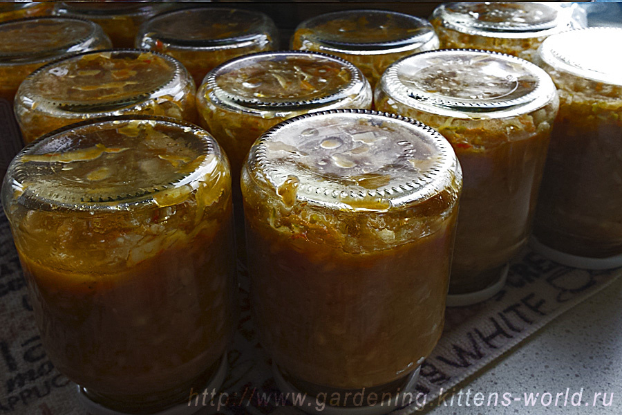 3. Наконец, в конце приготовления добавляется уксус, и масса увариваться еще 10 минут. Горячую заправку раскладывают по стерилизованным банкам и плотно закрывают крышками.