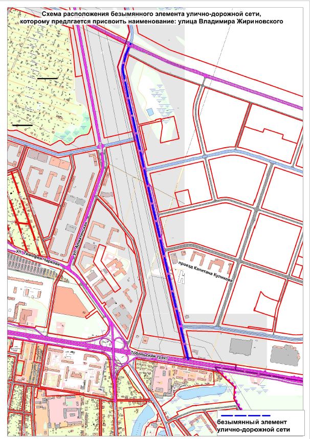 Уважаемые жители города Тюмени! На очередном заседании комиссии по присвоению, изменению, аннулированию наименований элементов планировочной структуры и элементов улично-дорожной сети в границах города Тюмени будет рассматриваться предложение депутата по единому избирательному округу Тюменской городской думы Ошуркова Д.Л. о присвоении безымянному элементу улично-дорожной сети территории планировочного района № 14 «Мысовский» наименования: имени Жириновского Владимира Вольфовича – тюрколога, филолога, юриста, депутата Государственной Думы Федерального собрания Российской Федерации, председателя Либерально-демократической партии России (предлагаемое наименование: улица Владимира Жириновского).