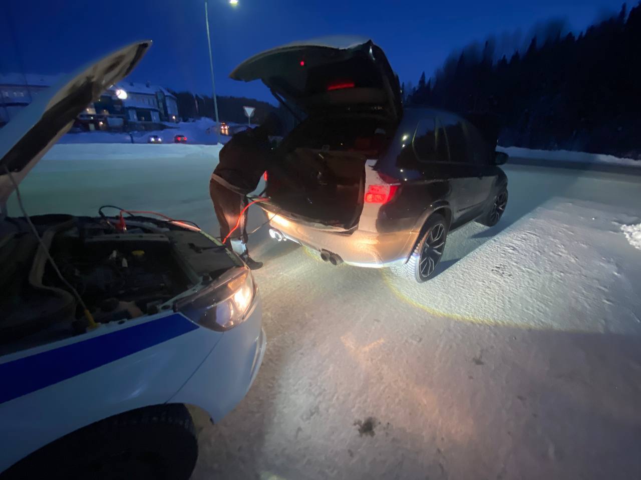На 371-м км трассы Тюмень — Ханты-Мансийск (Уватский район) при -33°C инспекторы помогли водителю BMW, у которого сел аккумулятор. После «прикуривания» автомобиль смог благополучно продолжить путь в Нижневартовск.