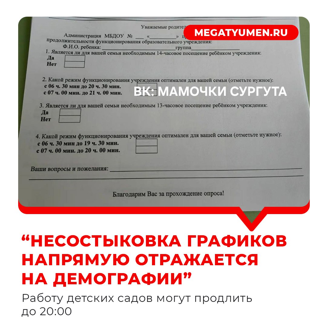В детсадах большой Тюменской области проводят анкетирование среди мам и пап, чтобы выяснить, следует ли продлить работу садов до 20:00