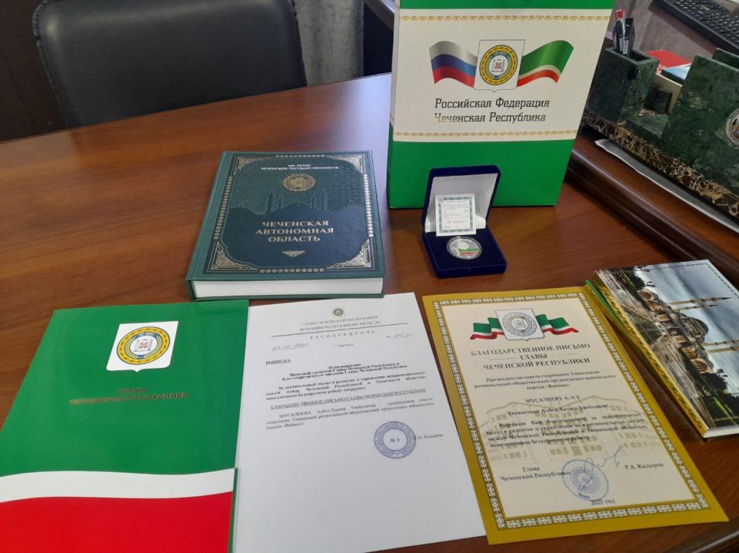Благодарственное письмо подписано главой Чеченской Республики Рамзаном Кадыровым. В документе отмечается общественная и культурная деятельность Албек-Хаджи Мусалиева, направленная на сохранение национальных традиций, развитие межкультурного диалога и укрепление добрососедских отношений между регионами. Награду руководителю организации «Вайнах» передали через официального представителя.