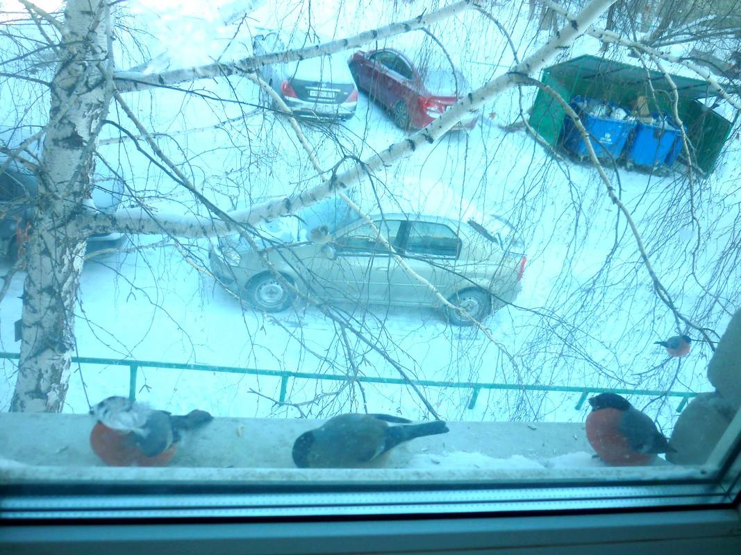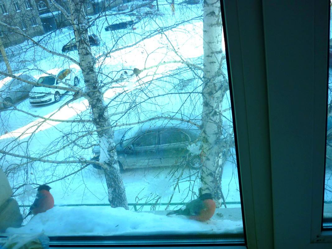 Милоты вам в ленту: только посмотрите на этих красавцев! Снегири облюбовали окно тюменки