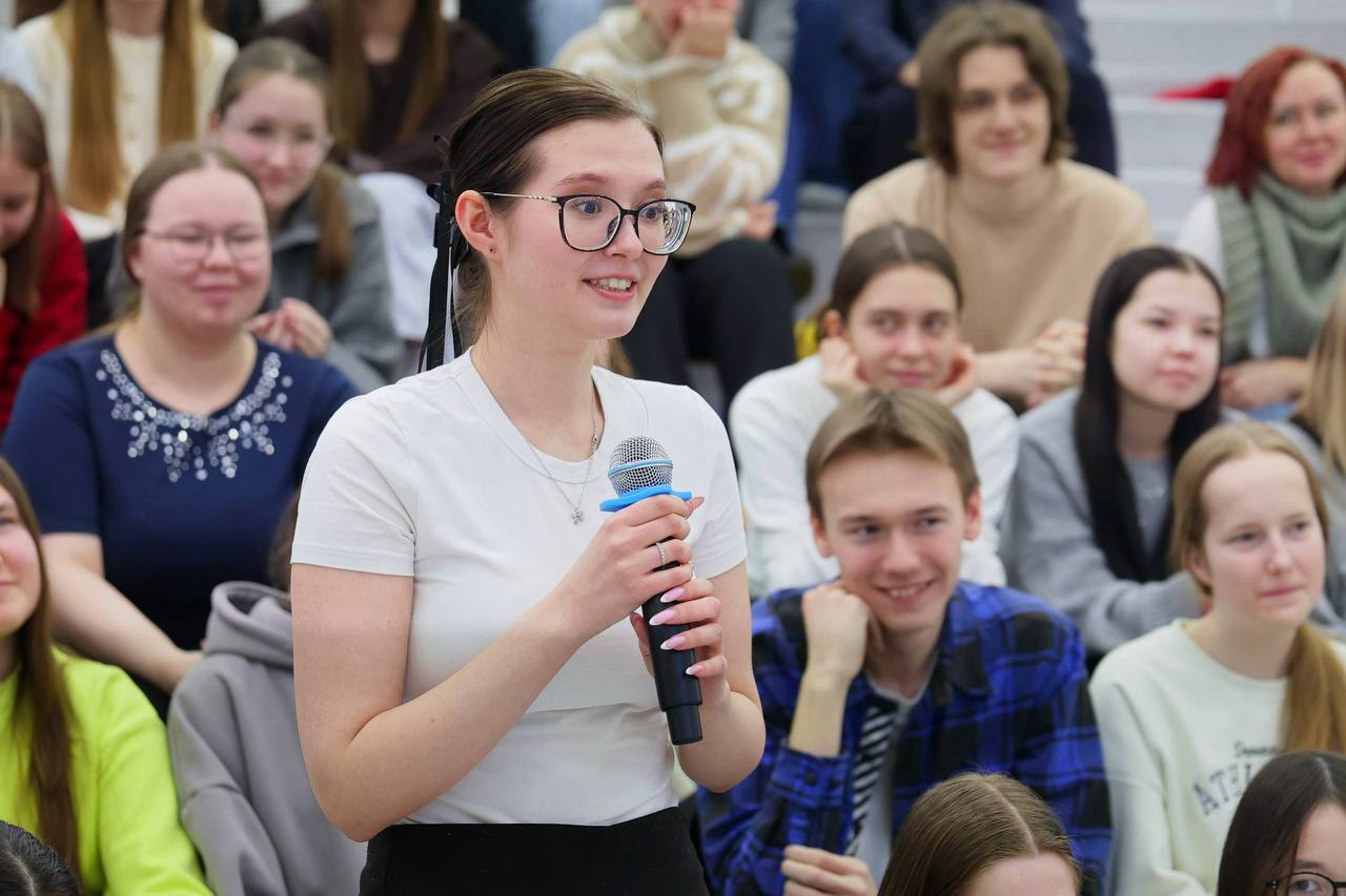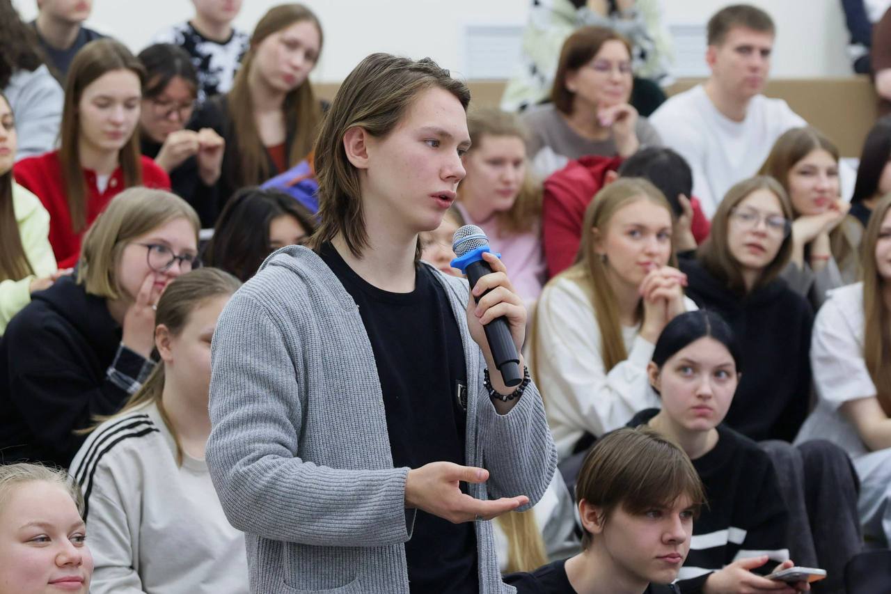 Классно поговорили, я с удовольствием вспомнил свои студенческие годы. Друзья, спасибо за вашу открытость, пытливый ум и даже, за вопросы про снег и расписание автобусов! Видно, что вам не всё равно, чем живёт город, а значит, мы с вами – в одной команде.