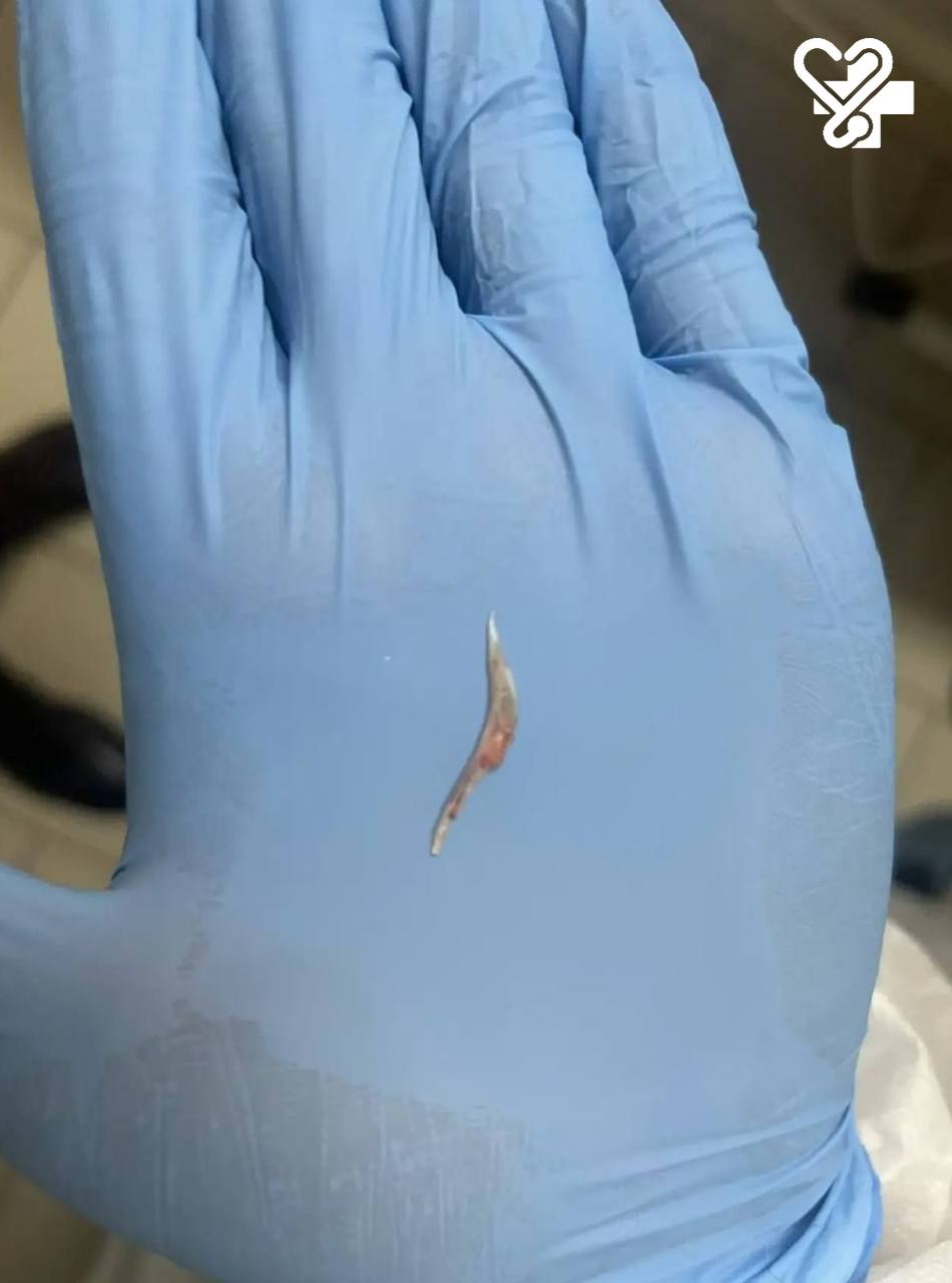 Врачи работали под седацией, действуя предельно аккуратно — словно сапёры при обезвреживании мины. В результате кость успешно извлекли.