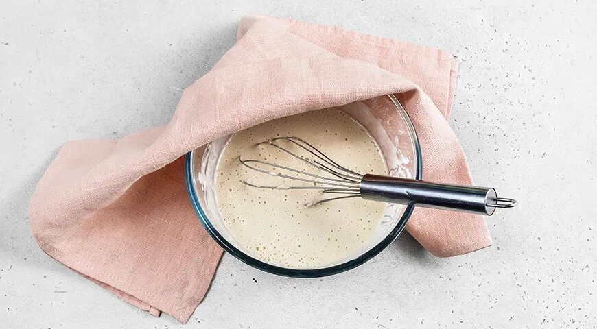 Для начала необходимо приготовить опару. В 200 мл теплой воды (35 °C) нужно растворить свежие дрожжи и тщательно перемешать. Затем добавить 100 г пшеничной муки и снова перемешать. Оставьте смесь под полотенцем в теплом месте на час. За это время она должна увеличиться в объеме вдвое.