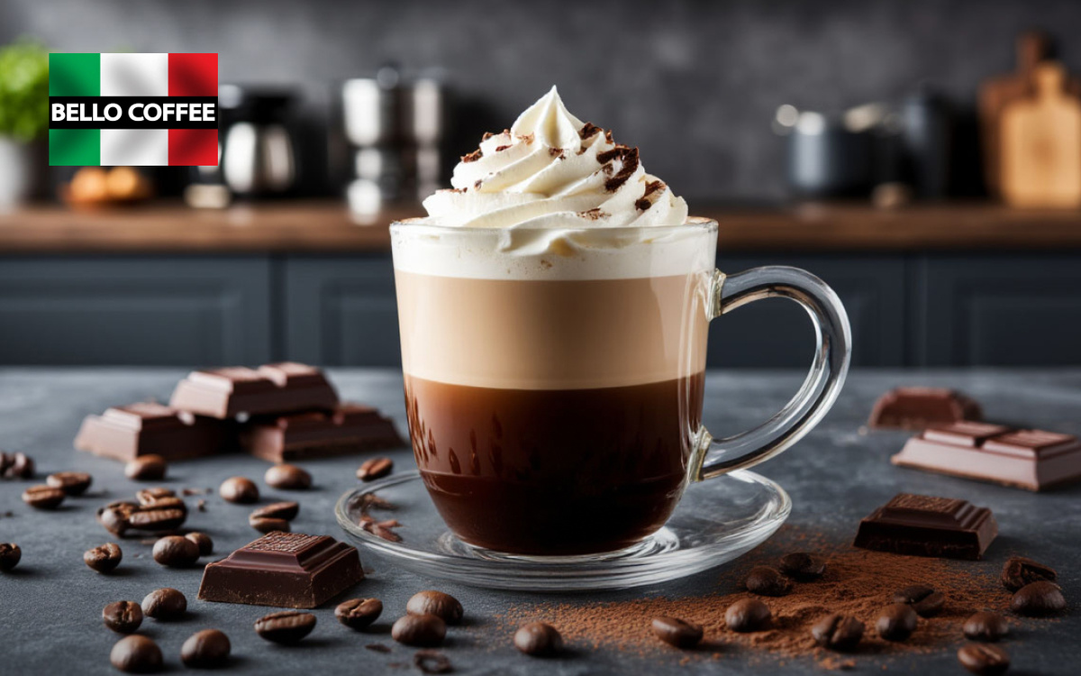 Идея состоит в том, чтобы не использовать трубочку и не смешивать напиток! Каждый глоток должен сочетать в себе горячий кофе, тёмный шоколад и бережно взбитые сливки, создавая удивительный контраст температур и текстур. Бичерин с зернами Bello Coffee подарит ощущение маленького итальянского отпуска прямо у вас дома!