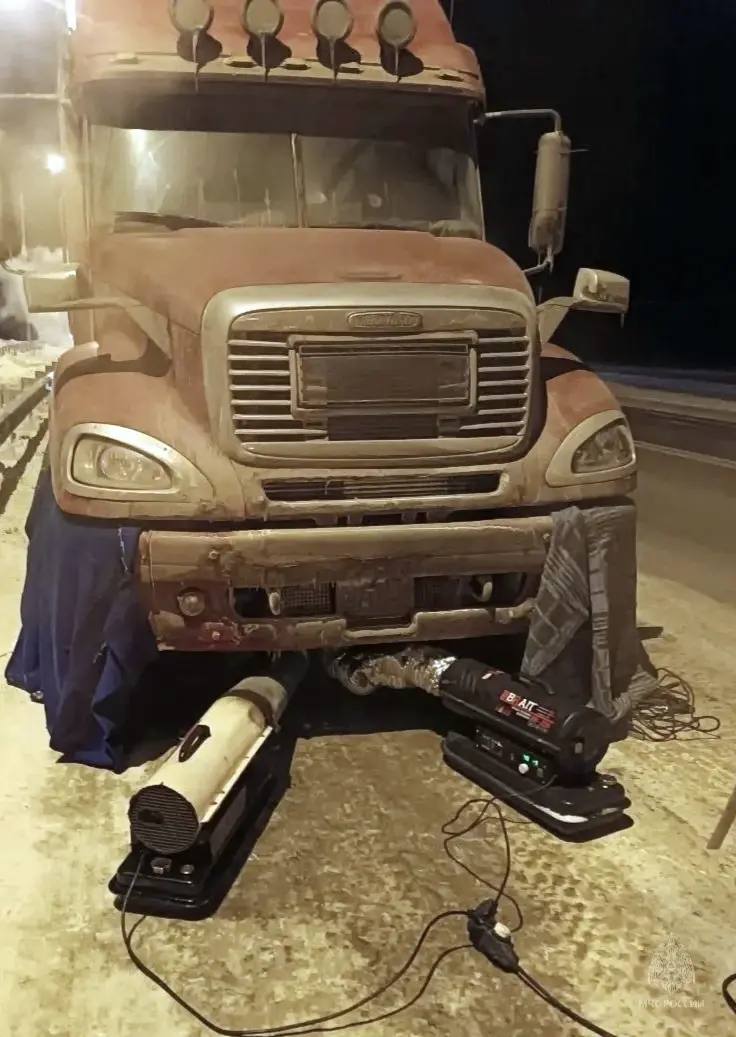 Спасатели отогрели фуру в морозный вечер на федеральной трассе