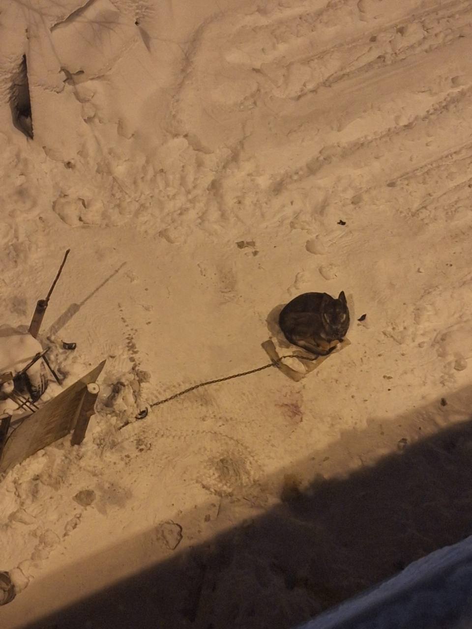 — Собака лежит на картонке и на цепи в морозы -30!Под пермяковскии мостом со стороны кафе Король на огражденной территории и день и ночь сидит собачка на привязи в лютые морозы -30! Хозяин видимо сжалился и постелил ей картонку для обогрева. Рядом у собачки ни будки ни укрытия лишь пустая миска. Как же вам спится уходя после работы по своим тёплым домам? Неужели у мужчин что на территории нет возможности а главное жалости соорудить животинке будку или какое-либо укрытие и посыпать сена. Разве так можно? Люди что с вами происходит?