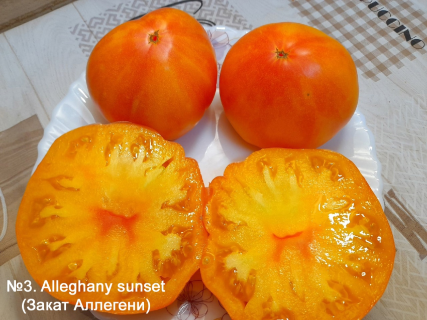 Часто считается, что этот сорт имеет американские корни, где акцент ставился на вкус и размер плодов, что делает его идеальным для свежего потребления. Закат Аллегени — это сорт для истинных ценителей необычных томатов, готовых к экспериментам.