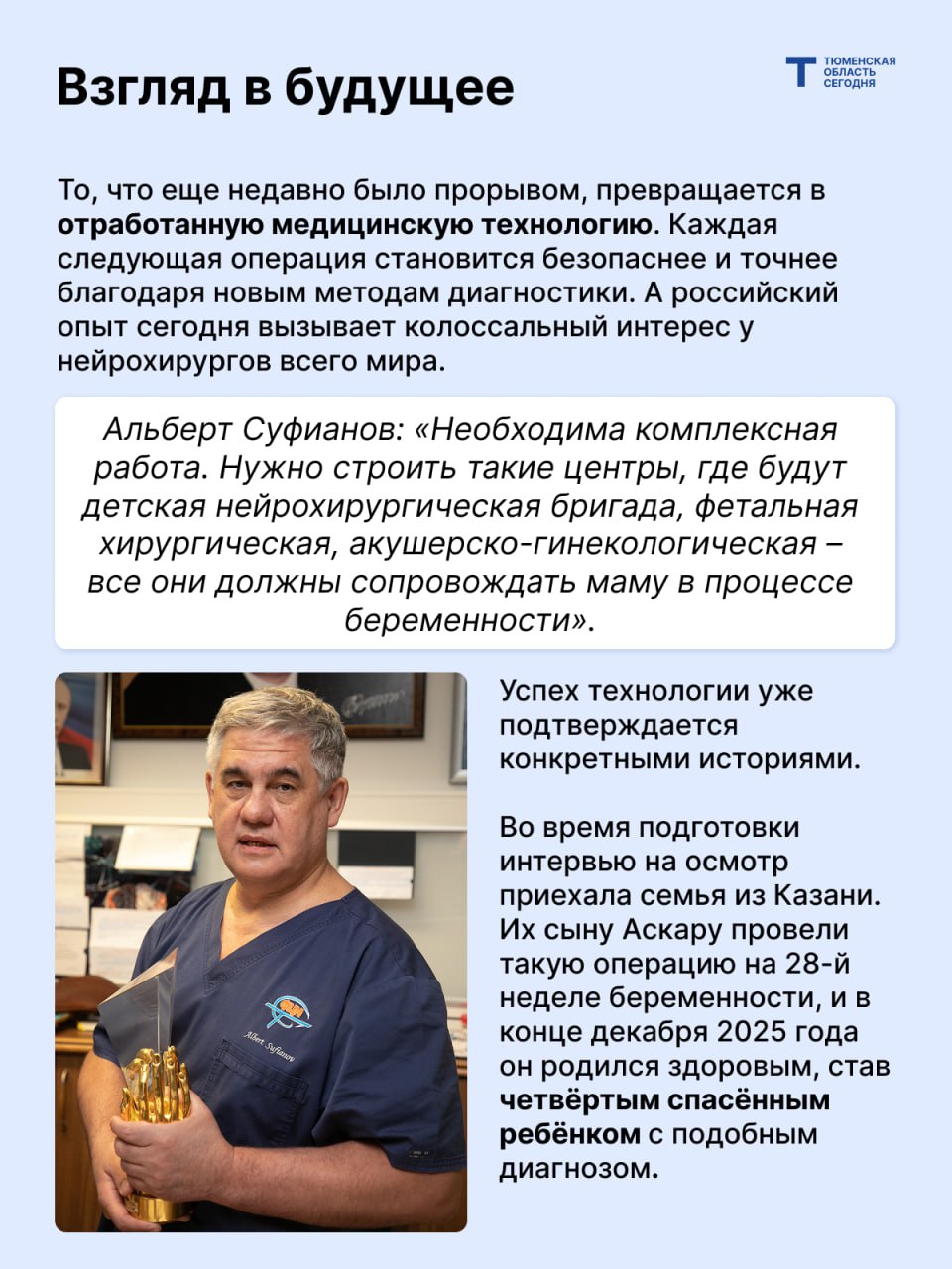 Всего несколько лет назад нейрохирург Альберт Суфианов провёл операцию, которая считалась почти невозможной. Сегодня эта технология дарит шанс детям со сложным диагнозом — гидроцефалией плода.