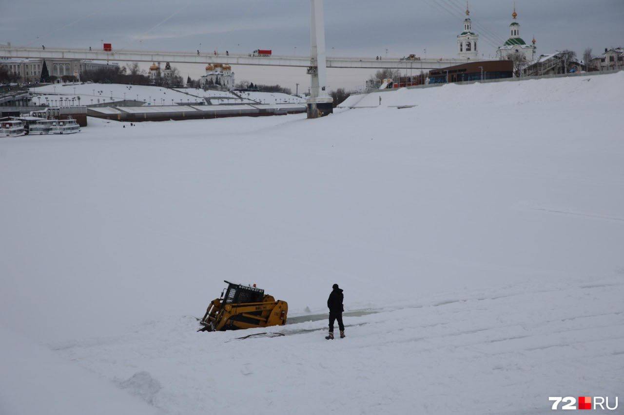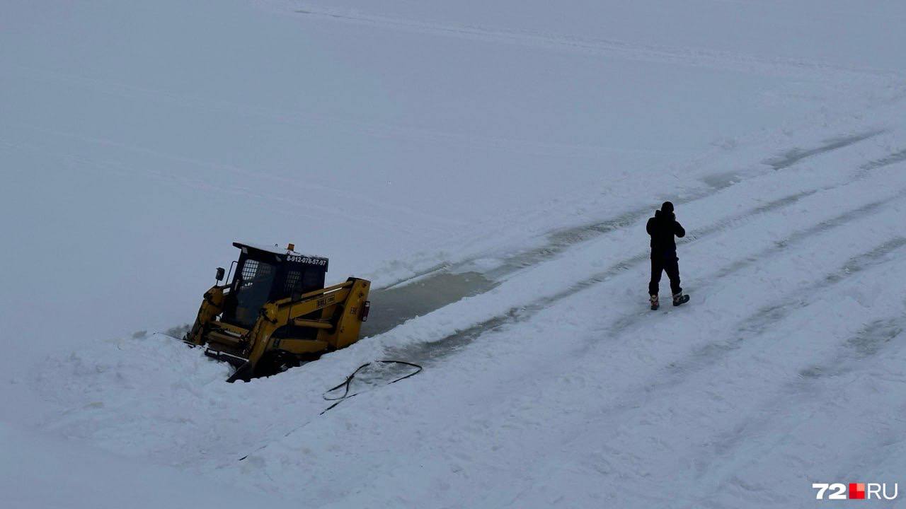 На Туре произошло неожиданное событие: трактор внезапно погрузился под лёд