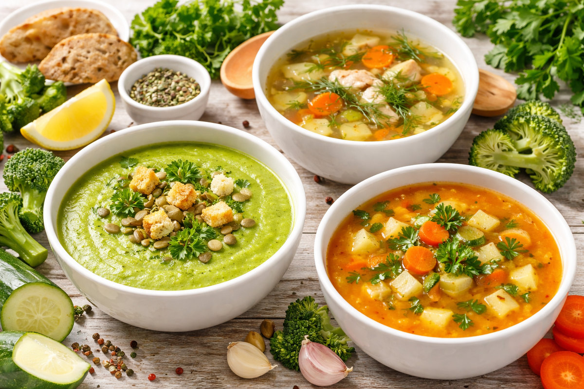 Легкие супы отлично активируют пищеварение и помогают организму. Рассмотрите следующие варианты: