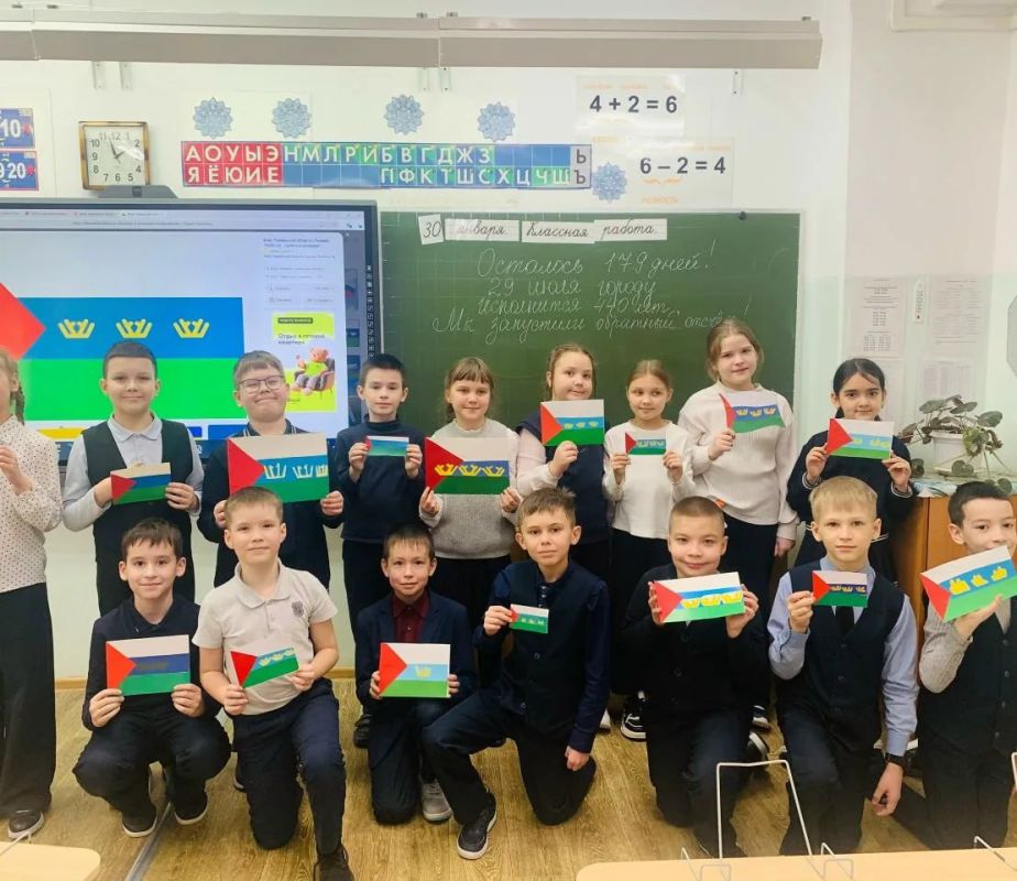 В преддверии знаменательной даты — 440-летия основания Тюмени в школе № 63 кипит творческая работа. Ученики изготовили поделку в виде флага Тюменской области, тем самым поддержав открытие юбилейного года и начав обратный отсчет до важной даты.