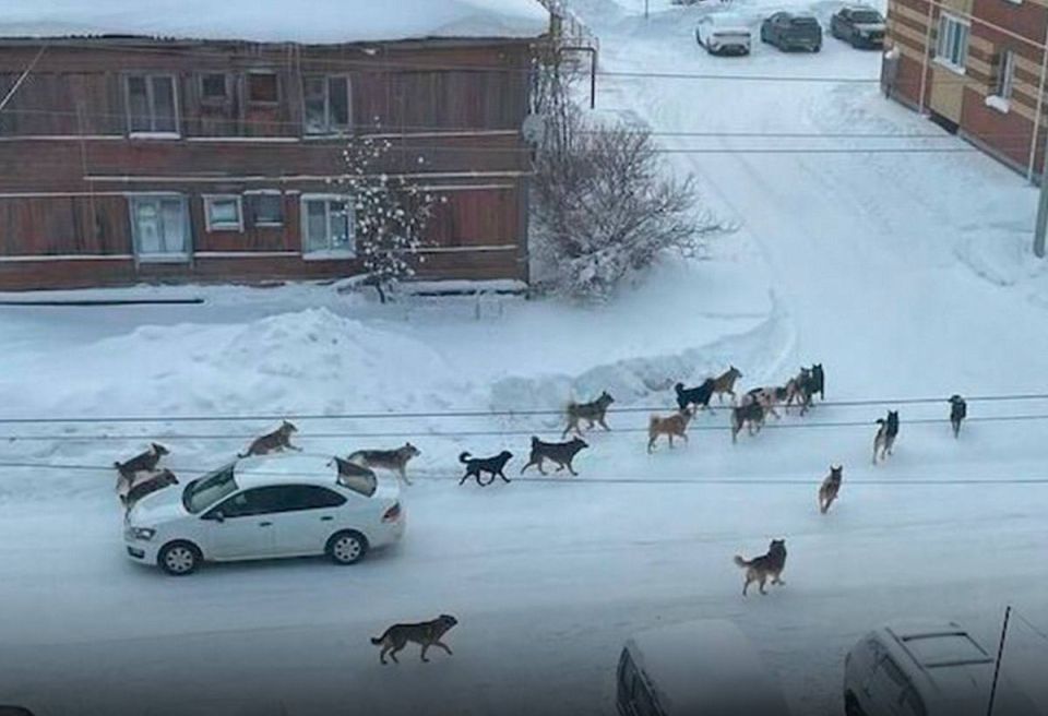 Свора собак терроризирует жителей большой Тюменской области: стая беспризорных псов бегает по улицам города в ХМАО