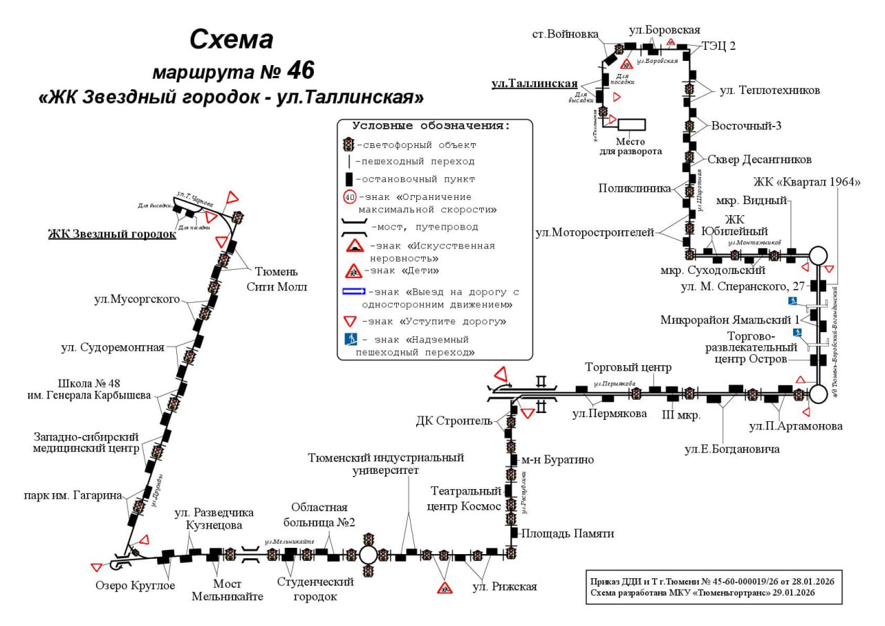 С 14 февраля в схему движения маршрута регулярных перевозок № 46 «ЖК «Звездный городок» – ул. Таллинская» включаются остановочные пункты «ул. Михаила Сперанского, 27» в обратном направлении, «ЖК “Квартал 1964”» в прямом направлении.