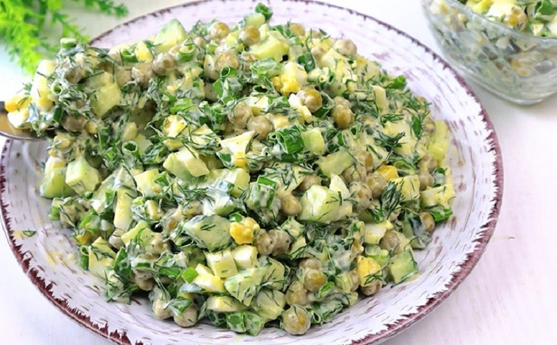 Этот салат особенно ценен за его простоту: он не требует сложных ингредиентов и длительной подготовки. Вареные яйца добавляют сытности, а горошек сладость и яркость вкуса. Такой салат можно взять на ланч или пикник, благодаря своей устойчивости к времени и температуре.