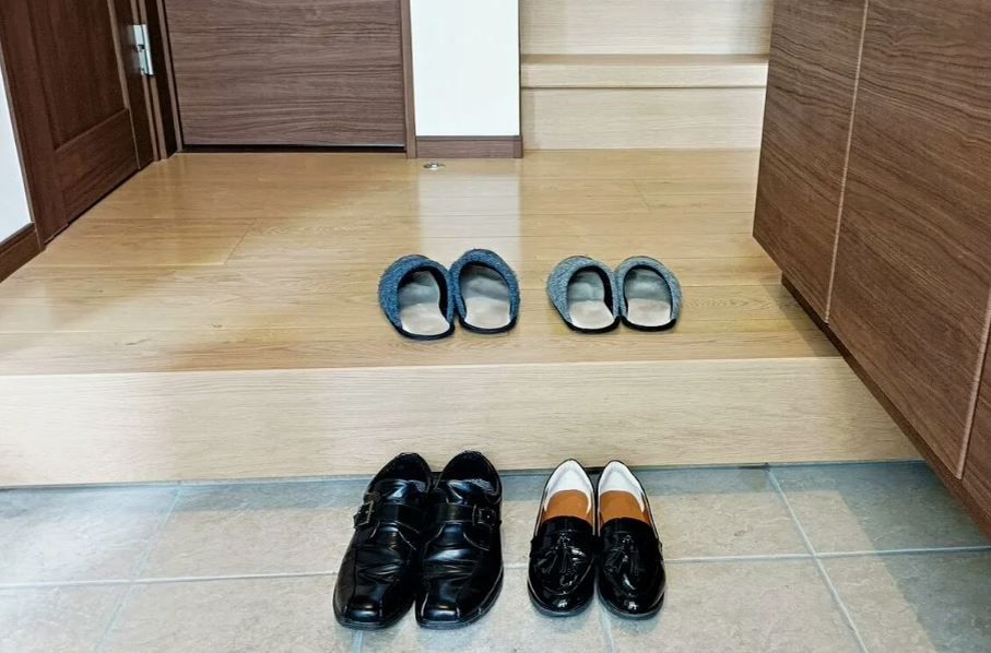 Прибывает внимание путешествующих к японским прихожим (генкан), где обувь остается за дверью. Это граница между шумом улицы и спокойствием дома. Уличная пыль не проникает внутрь, что позволяет поддерживать чистый воздух.