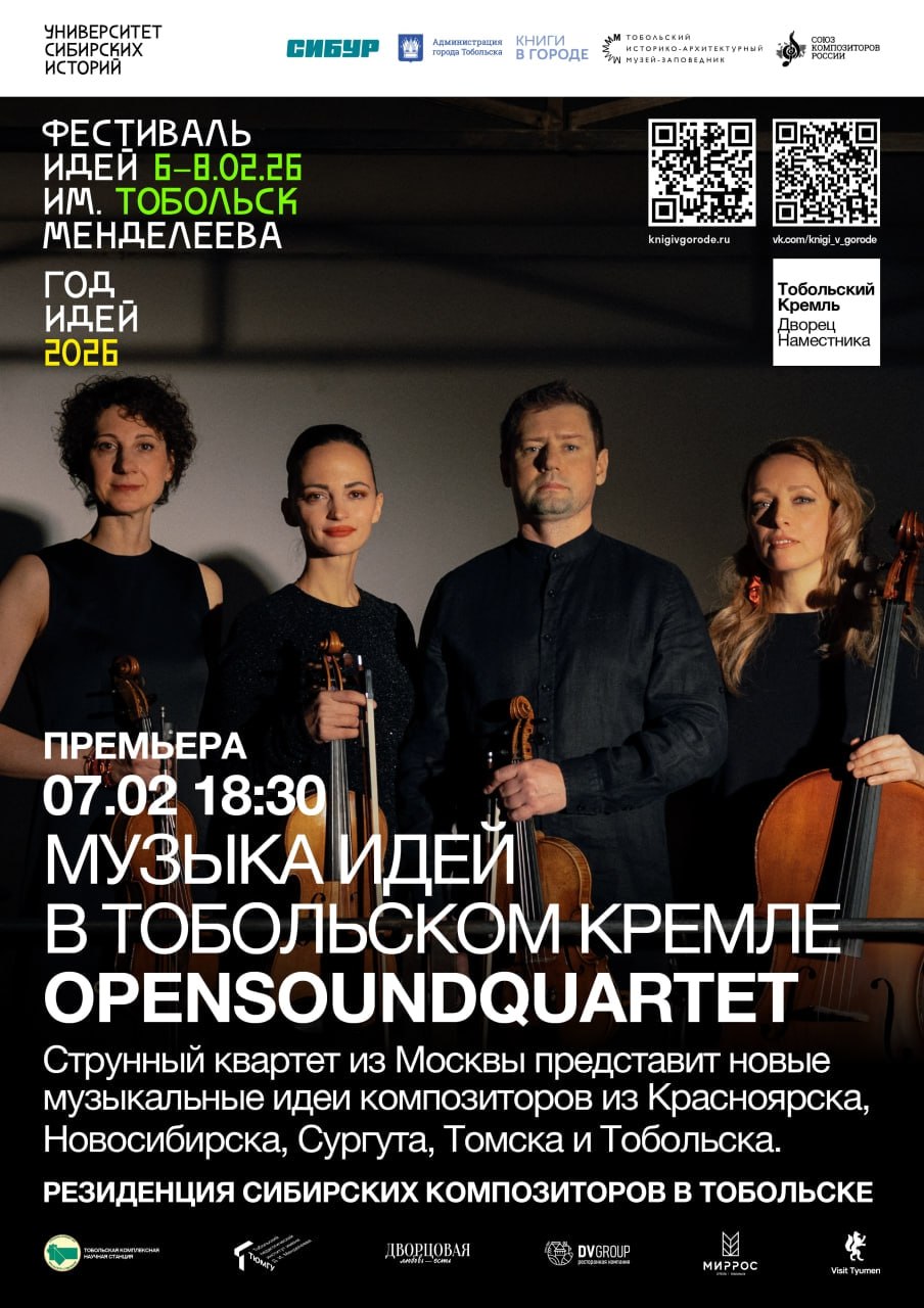 Фестиваль идей им. Менделеева организован Университетом сибирских историй при содействии платформы контекстного развития территорий «Книги в городе» при поддержке компании СИБУР и Администрации города Тобольска.