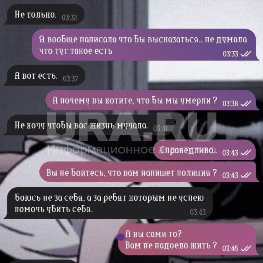 По словам женщины, в переписке неизвестный требовал от ребенка наносить себе увечья и готовиться к совершению самоубийства. Как только с ним попытались связаться, собеседник удалил профиль.