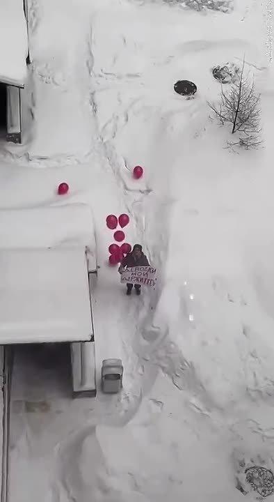 Женшина приехала с шариками и плакатом, где написано Девочки мои, держитесь.