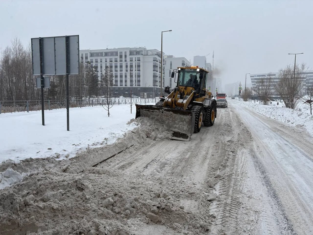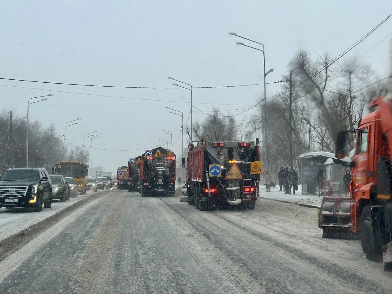 По всему городу в дневную смену задействовано 613 дорожных рабочих и 707 единиц спецтехники: 99 комбинированных дорожных машин, 151 трактор (МТЗ), 132 погрузчика, 227 самосвалов и прочей.