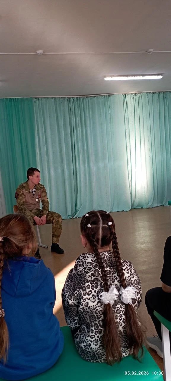 5 февраля в стенах ДЮЦ Вероника состоялась душевная встреча с Семеном Дубовиченко, участником специальной военной операции. Семен поделился с ребятами своей непростой, но наполненной мужеством солдатской историей. Он рассказал о заветной детской мечте поступлении в кадетское училище, о годах службы на Дальнем Востоке, о миротворческой миссии в Карабахе и, конечно, о выполнении боевых задач в зоне СВО.