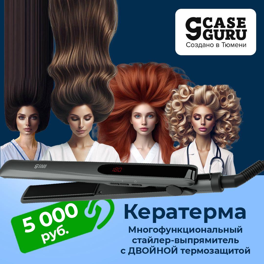 CaseGuru «Кератерма». Многофункциональный стайлер-выпрямитель с двойной термозащитой для множества укладок. Безопасное биокерамическое покрытие «Кератермы» не нагревается свыше 220°С и не пересушивает волосы. Рекордно высокий уровень защиты волос от пересушивания!