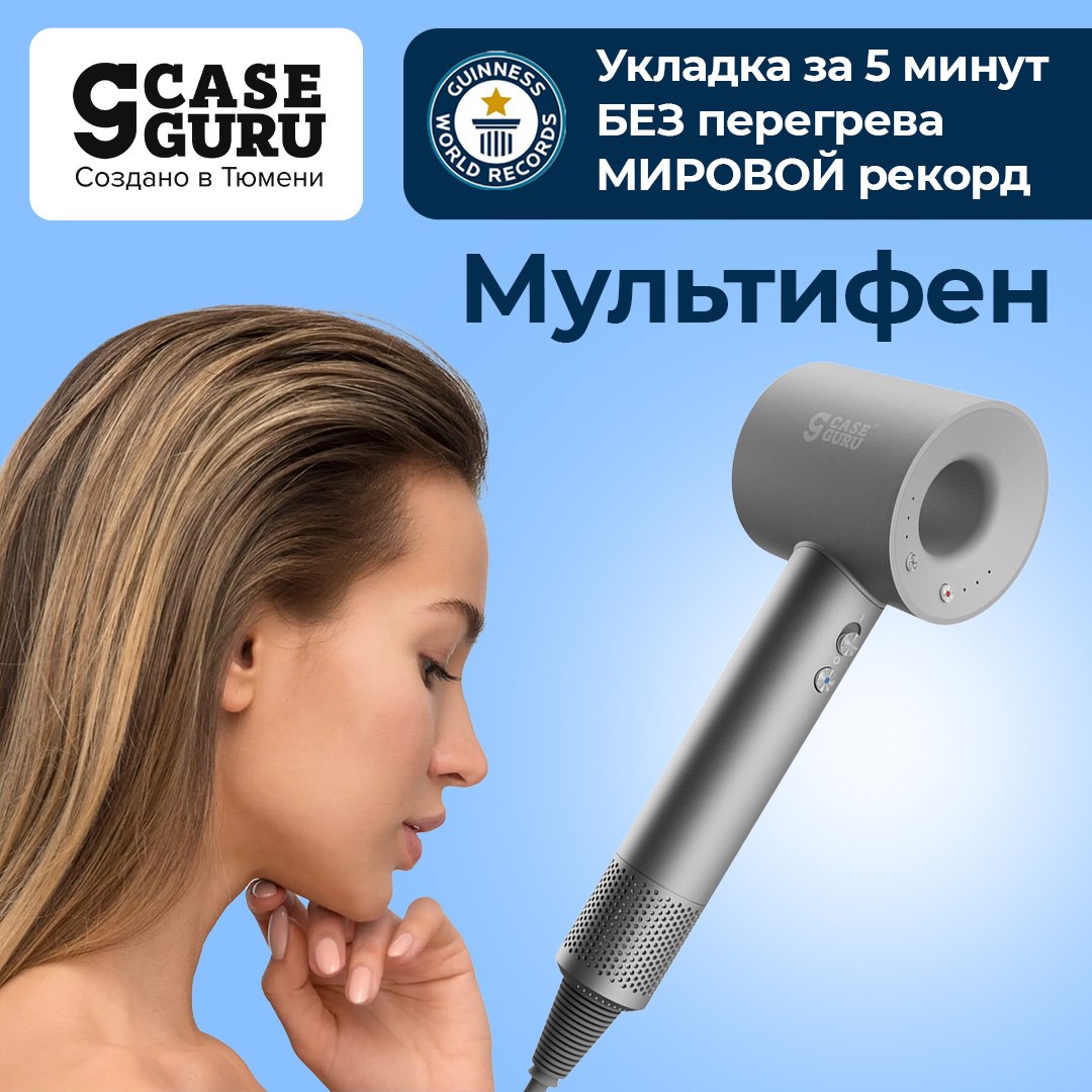 «Мультифен» CaseGuru: рекордно быстрые укладки менее чем за 5 минут. И БЕЗ вредного воздействия на волосы высоких температур! В комплекте 5 насадок для разных типов волос и укладок.