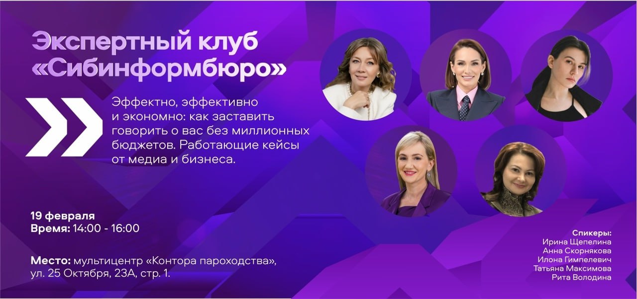 19 февраля встречаемся на Экспертном клубе "Сибинформбюро" и разбираем реальные кейсы медиа и бизнеса.