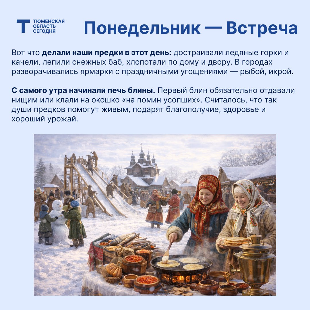 В карточках рассказываем, что принято делать в каждый из дней масленичной недели. Сохраняйте и делитесь с близкими!
