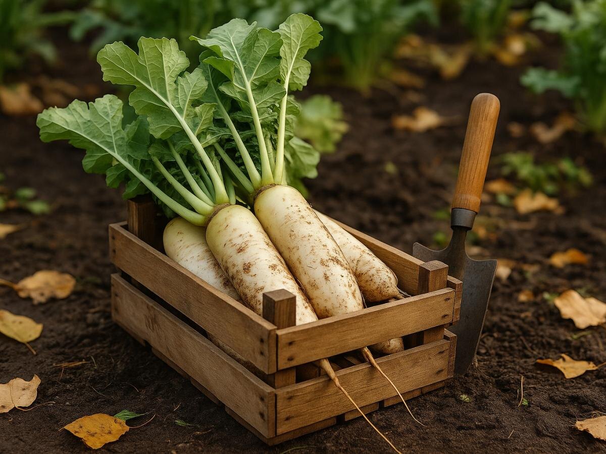 Ключ к успешной уборке дайкона — это плавность действий и отсутствие спешки. В идеале убирать овощ лучше в тёплый, сухой день, когда земля немного подсохла:
