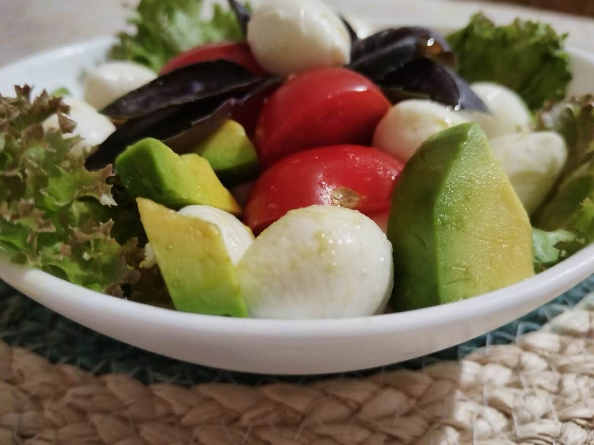 Легкий и освежающий салат с авокадо, помидорами и моцареллой