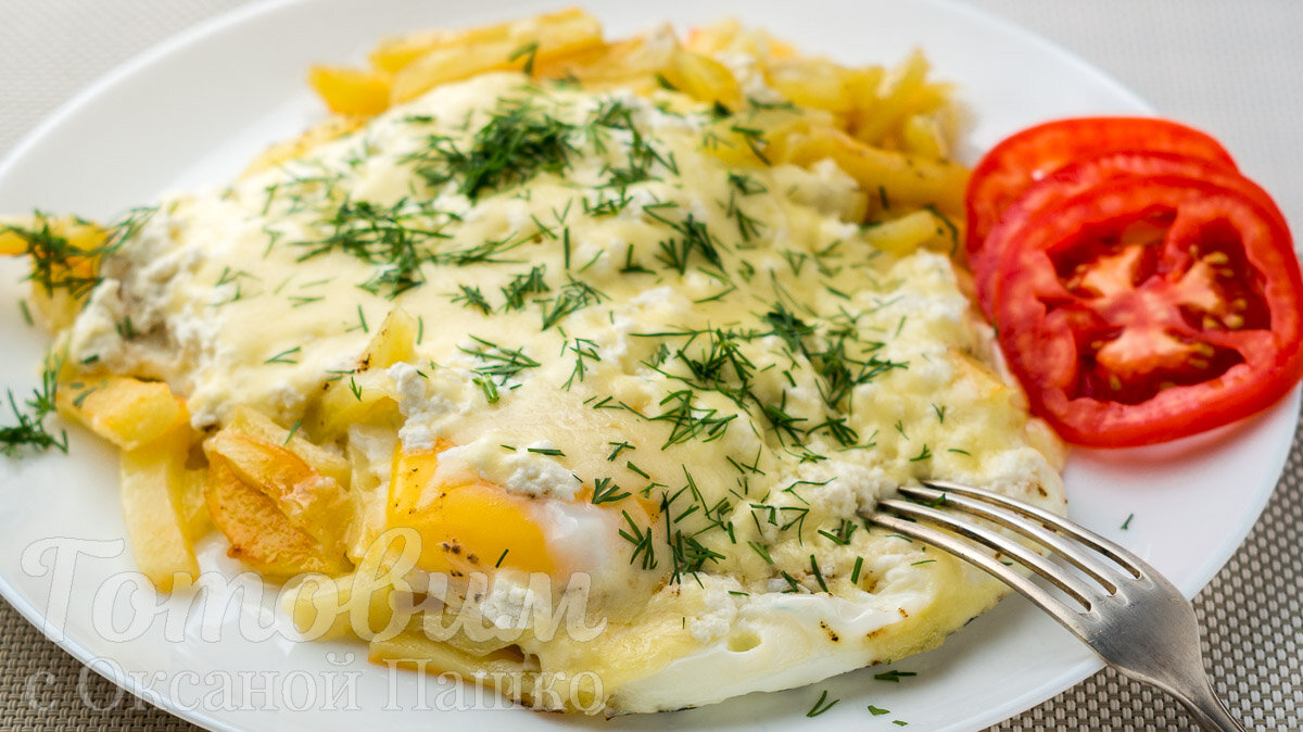 Завтрак с картошкой и яйцами — это идеальное решение для настоящих гурманов. Это не просто блюдо, а настоящий заряд энергии с утра. В нем гармонично сочетаются ароматная жареная картошка, нежная яичница и расплавленный сыр. Такой завтрак поможет любимому мужу оставить заботы о голоде до самого обеда.