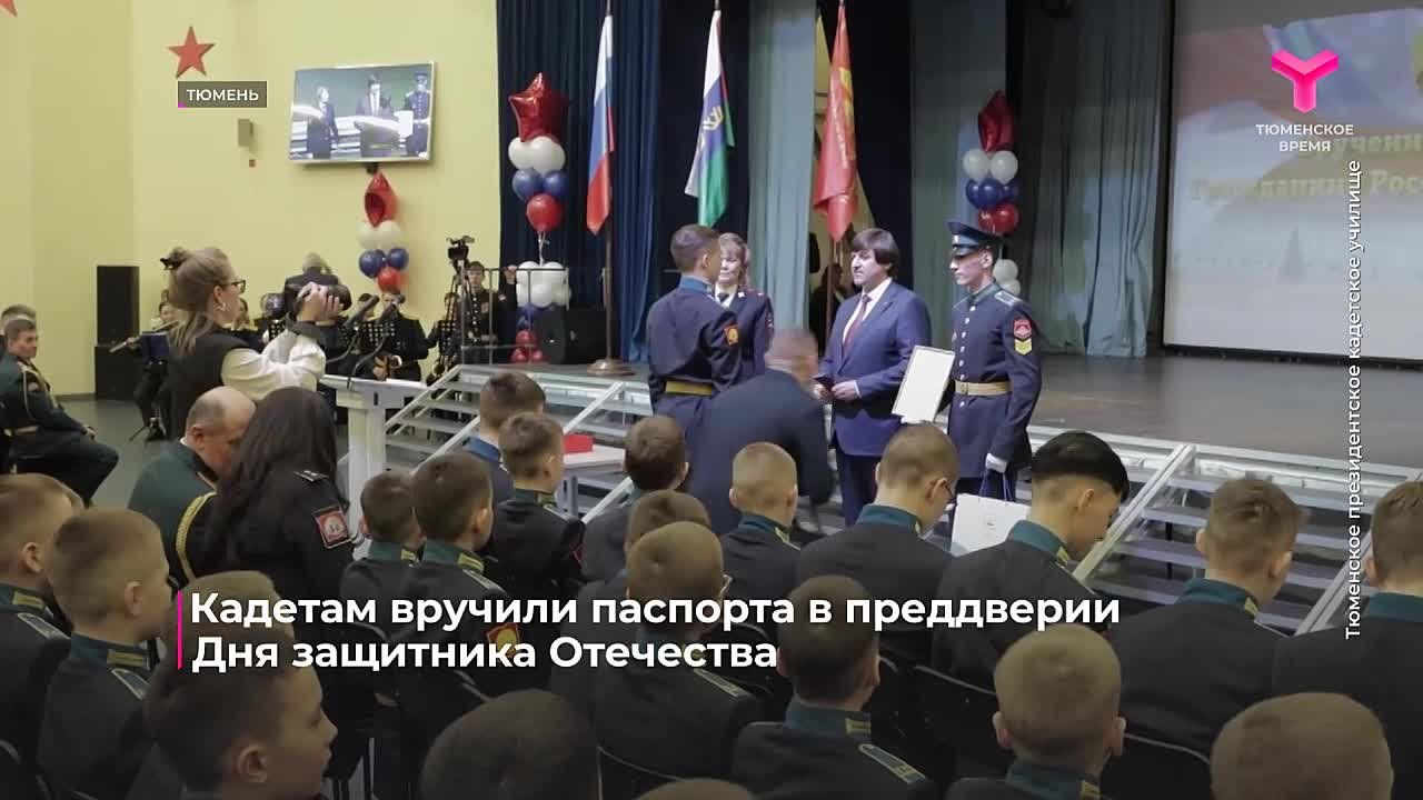 Тюменским кадетам в преддверии Дня защитника Отечества в торжественной обстановке вручили их первый главный документ гражданина России.