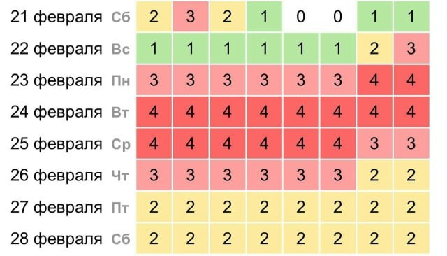 С 22 по 26 февраля нам обещают магнитную бурю. Ее пик придётся на 24–25 февраля (уровень — 4 балла). В эти дни некоторые люди могут почувствовать лёгкое недомогание или головную боль.