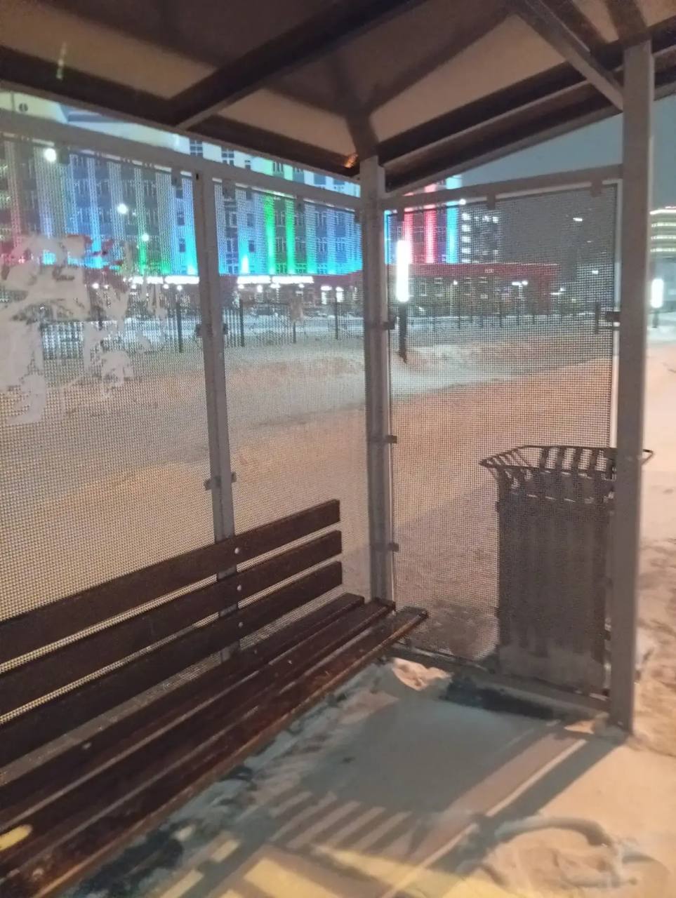 — Пожалуйста анонимно.Добрый день! Хотелось бы увидеть того, кто предложил установить в нашем городе такие металло-конструкции, на остановках автобусов? Не от ветра,снега, дождя не спрятаться. Продуваемая со всех сторон и быстро ржавеет. Мы ведь не на юге живём! Вчера пока ждали автобус в метель, просто замерзли в ней. Надо бы нашему мэру подумать об этом и заменить их на более закрытые.Я думаю,многие со мной согласны.