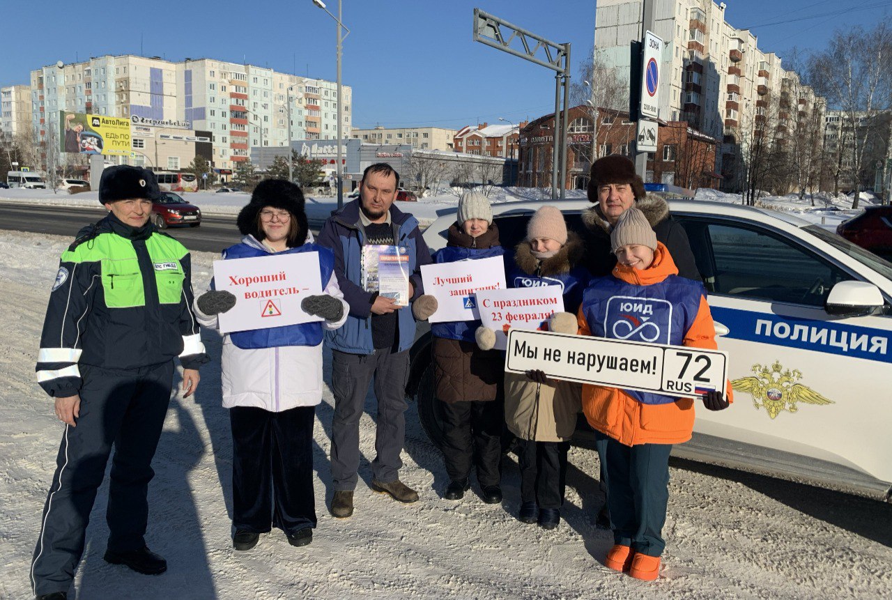 В Тобольске прошла акция «Вежливый водитель»: дисциплинированных водителей поздравили с 23 Февраля!