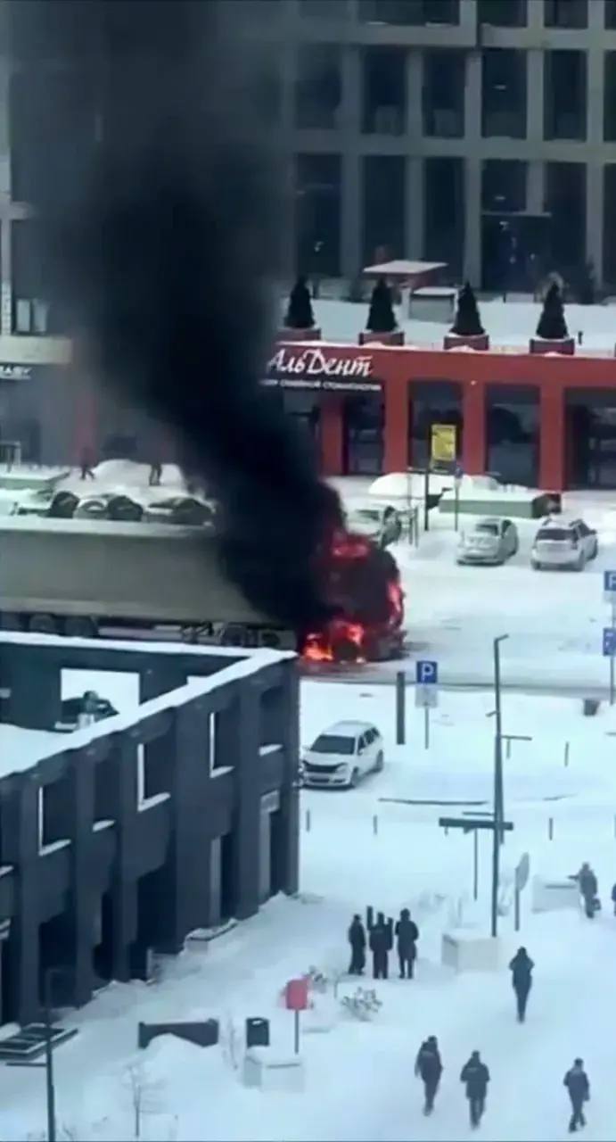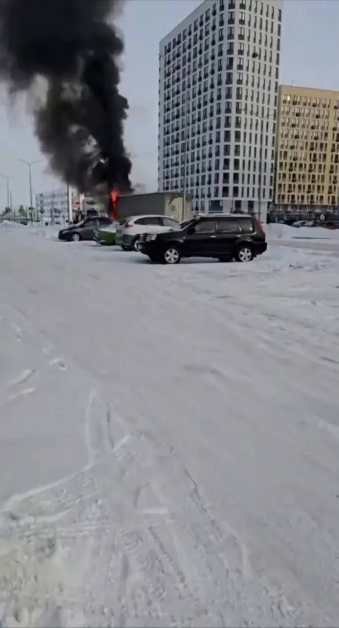 Фура полыхает во дворе многоэтажки в Тюмени