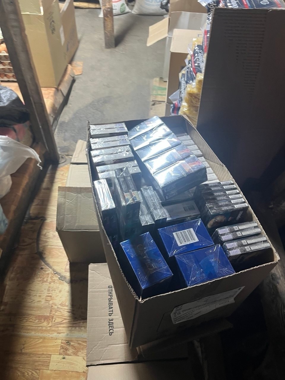 В складском помещении, арендуемом бизнесменом на территории одного из тюменских рынков, полицейские в присутствии понятых обнаружили и изъяли почти 11 тысяч пачек сигарет разных наименований на сумму более 1,4 млн рублей. На данную продукцию были нанесены акцизные марки соседнего государства, а также российские акцизы с признаками подделки.