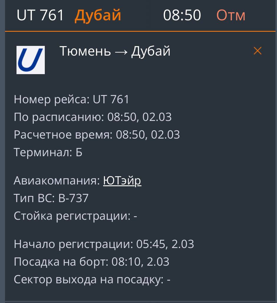 Два рейса в направлении Дубая отменили в тюменском аэропорту Рощино