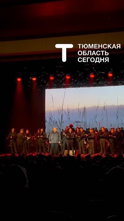 На сцене Николай Диденко, приглашенный солист Большого театра России, и хоровая капелла Тюменской филармонии. Исполняют «Ах ты, степь широкая»