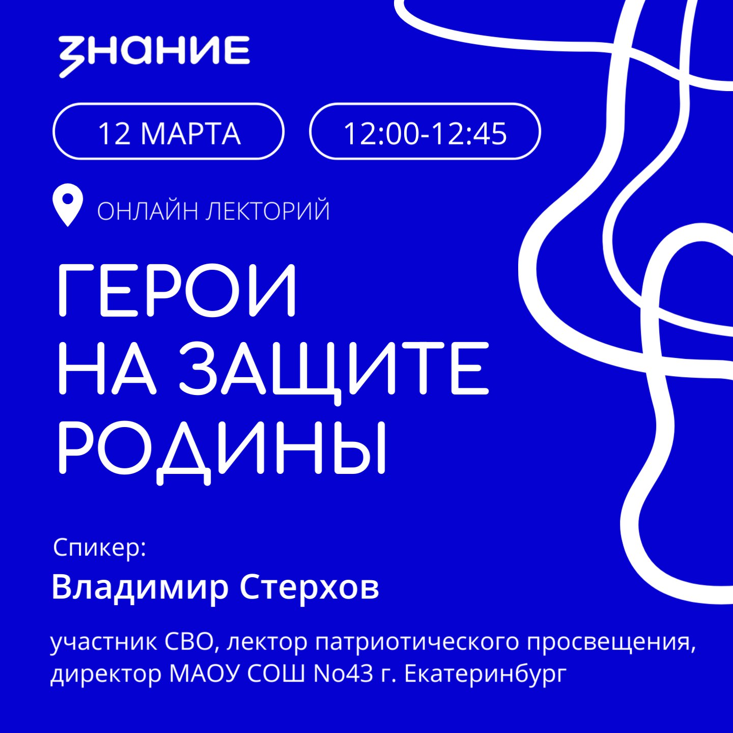 12 марта в прямом эфире лектор Российского общества «Знание» и ветеран СВО Владимир Стерхов расскажет о своём боевом пути и мужестве сослуживцев. Присоединиться к онлайн-лекторию могут все жители УрФО.