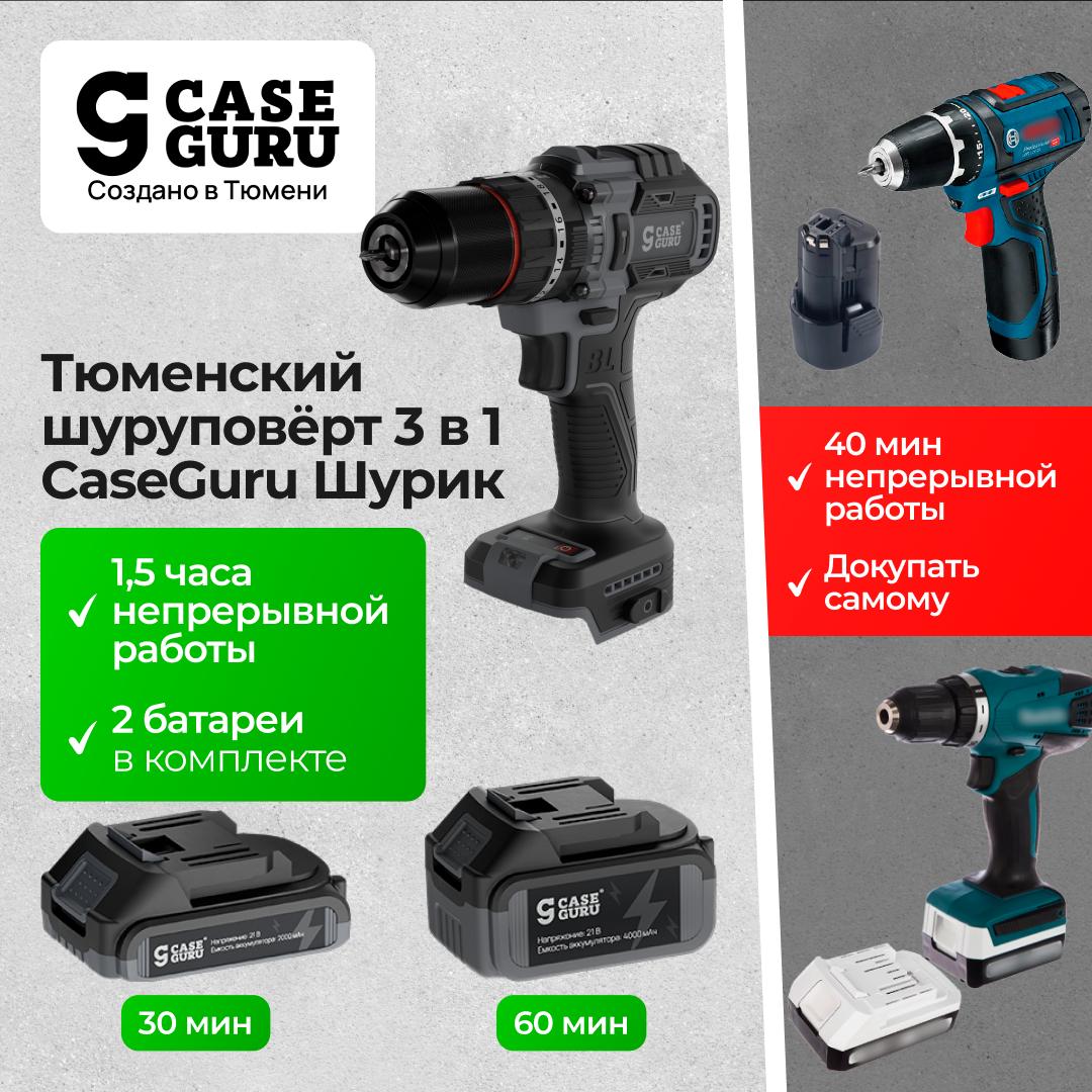 В каждом доме нужен тюменский универсальный инструмент CaseGuru Шурик 3 в 1 — шуруповёрт с функциями дрели и перфоратора!