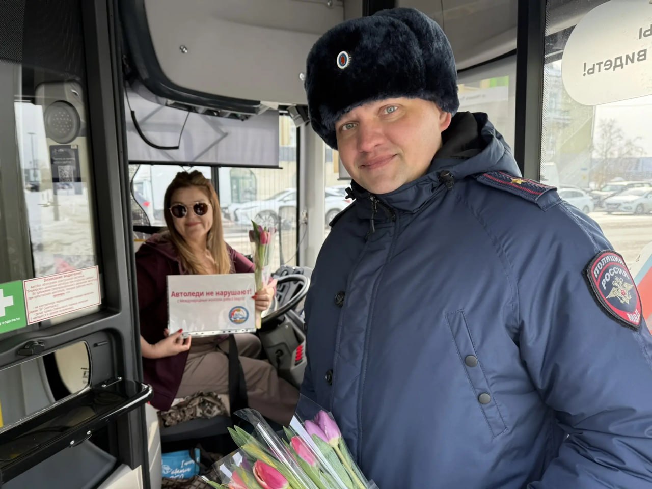 В Тюмени сотрудники Госавтоинспекции поздравили с Международным женским днем 8 марта женщин-водителей автобусов и сотрудниц Станции скорой медицинской помощи