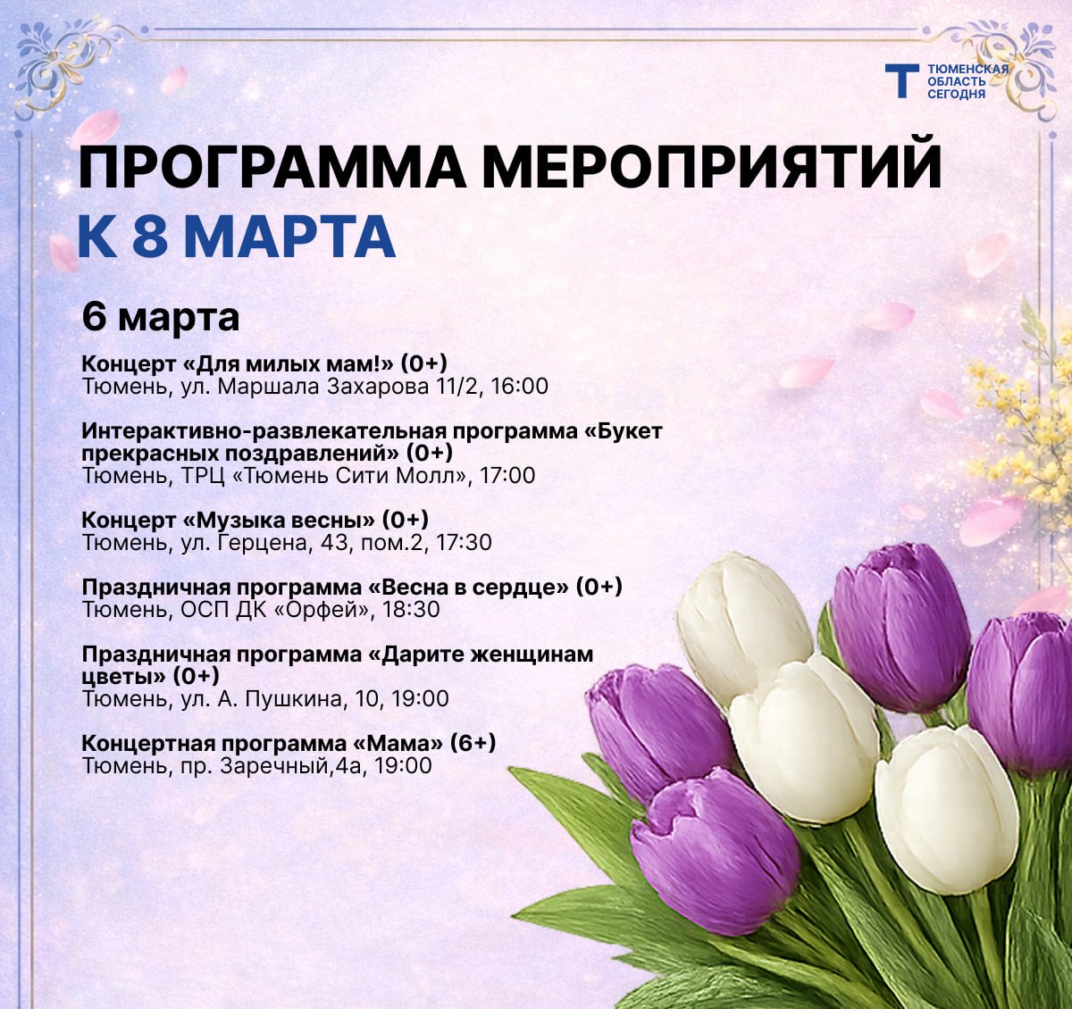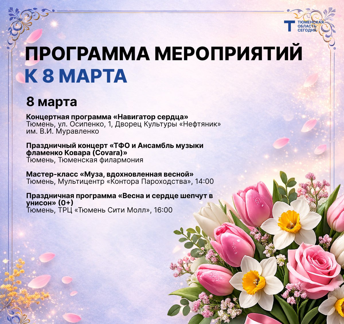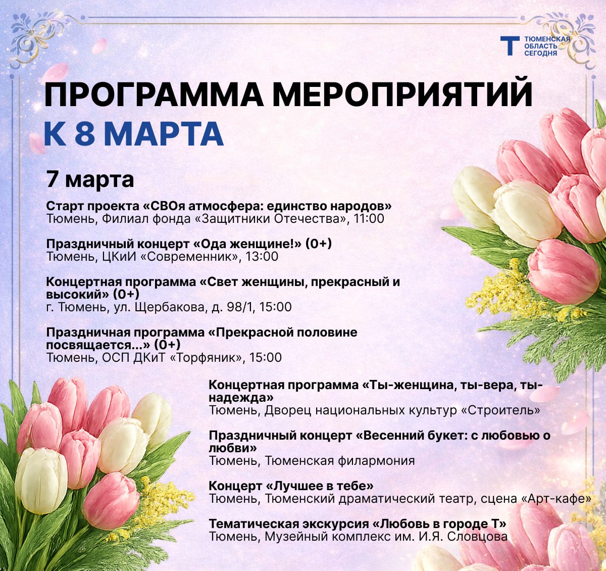 Концерты, экскурсии, мастер-классы — в регионе пройдут десятки событий, посвящённых Международному женскому дню. Рассказываем о самых интересных.