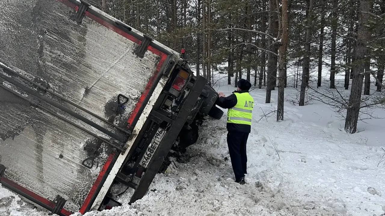 Трасса Тюмень — Екатеринбург: в результате аварии в кювете оказался грузовик