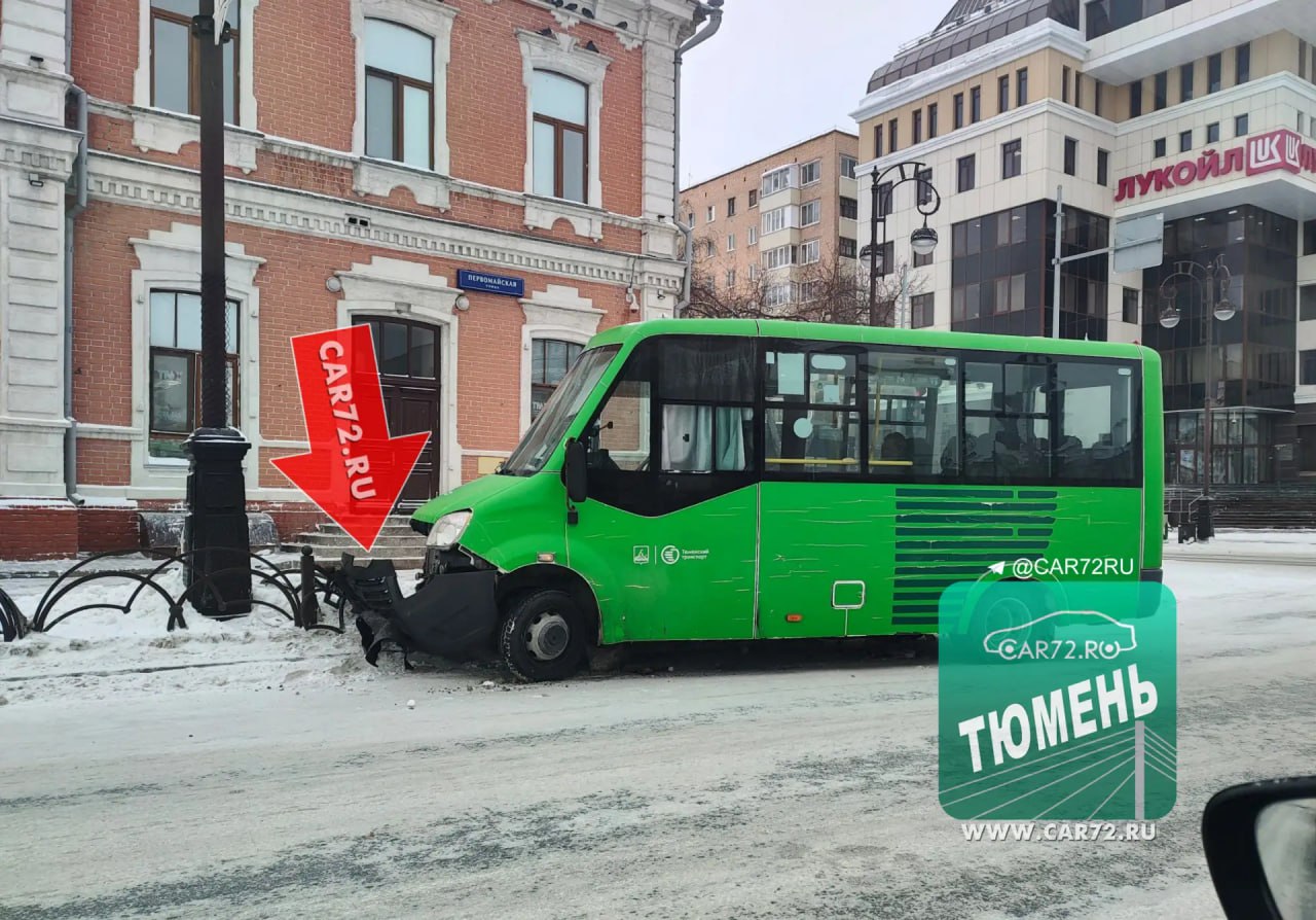 Маршрутка сегодня угодила в ограждение в центре Тюмени