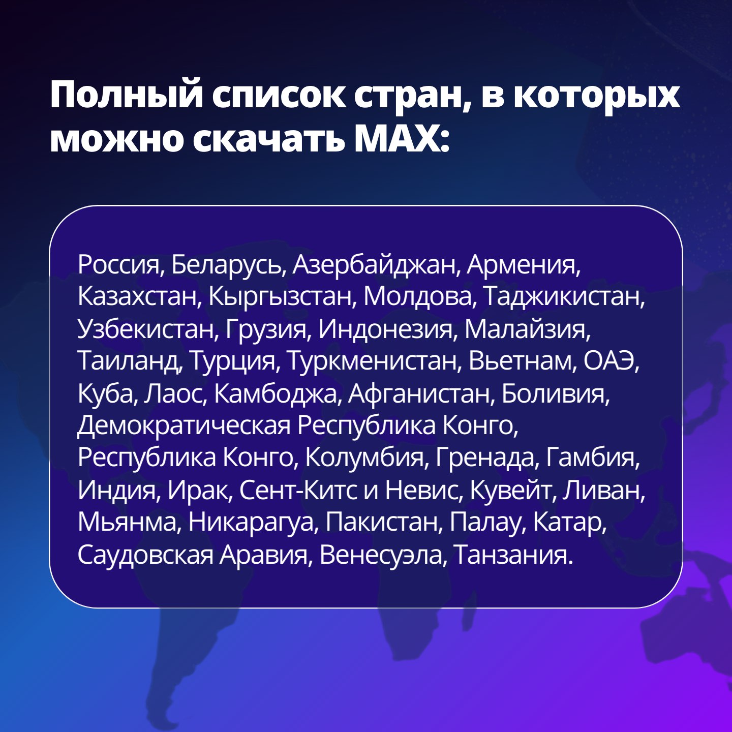 Полный список стран, где доступен MAX, смотрите в карточках