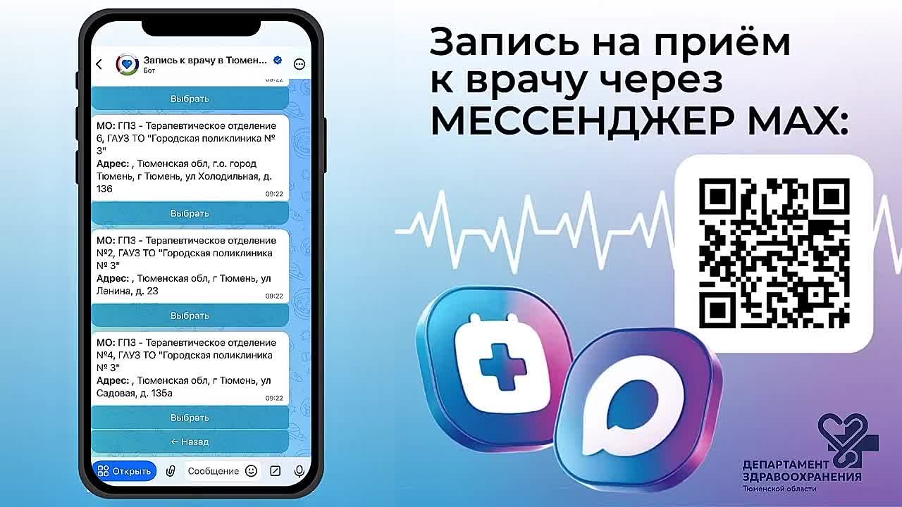 Жителям Тюменской области доступен новый канал записи на приём к врачу — чат-бот в национальном мессенджере МАХ!